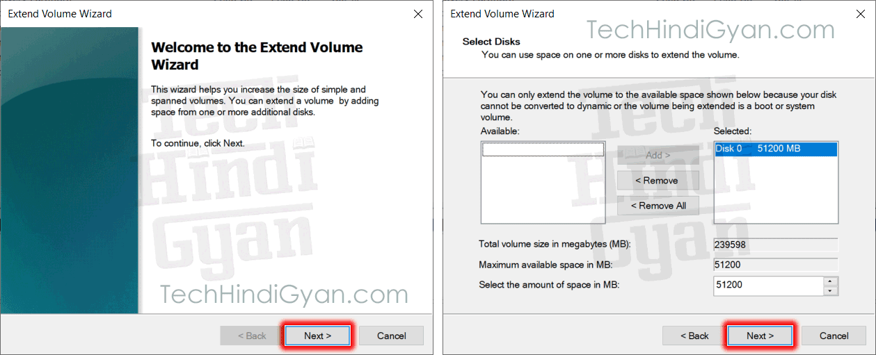 ● अब इसके बाद Select Disk का पेज open होगा, जिसमे by default deleted disk selected होती हैं।